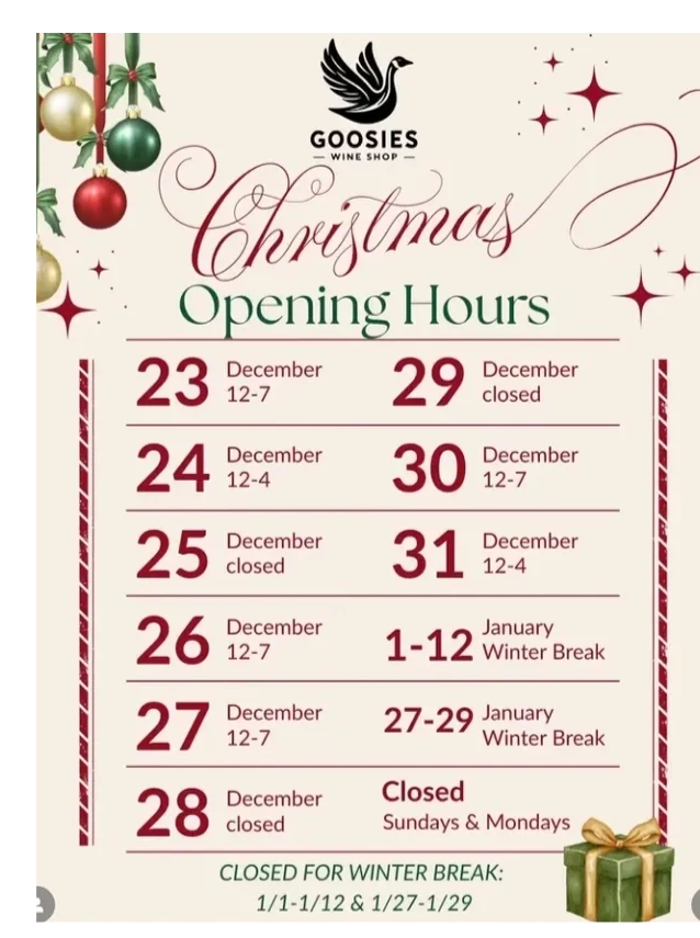 Stop by Goosies Wine Shop every Saturday for complimentary wine samples! 🍷 Come sip, explore, and discover your new favorite bottle!